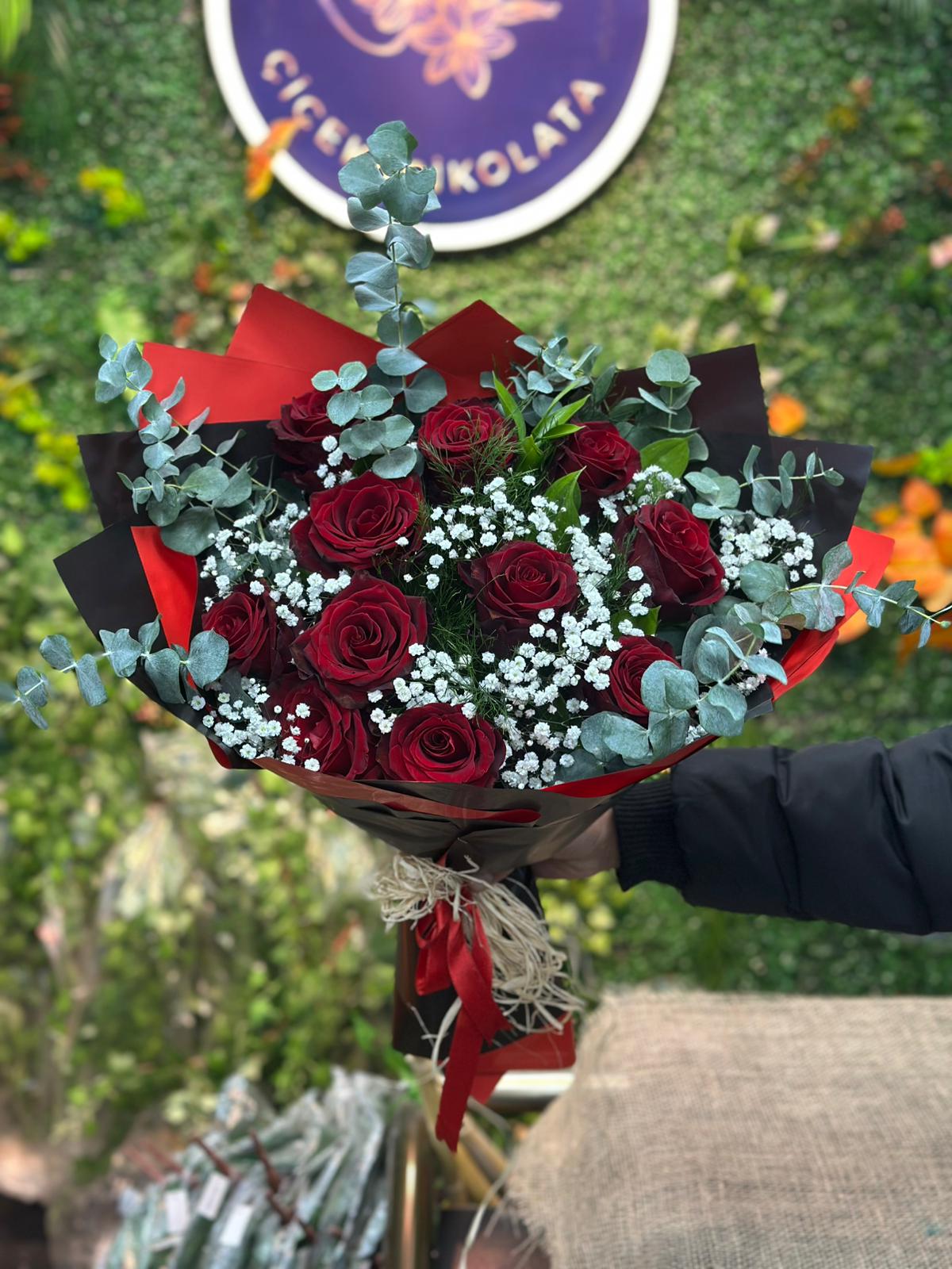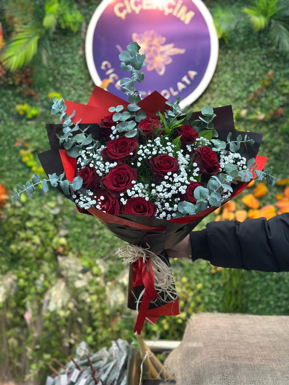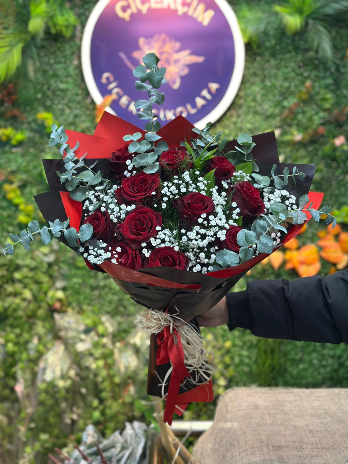 Yeşil Kahve Bukette Kırmızı Güller ve Papatyalar - 60018
