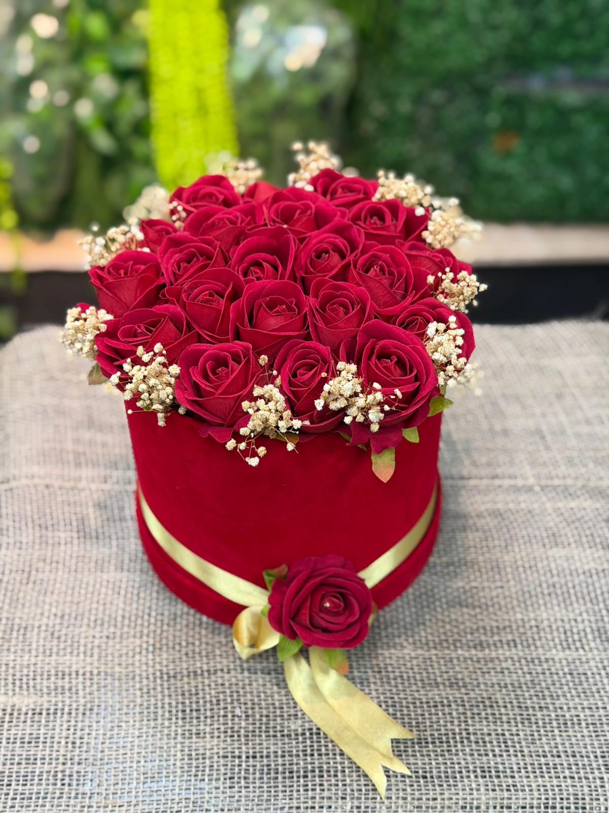 Kadife Kutuda 21’li Kırmızı Yapay Gül