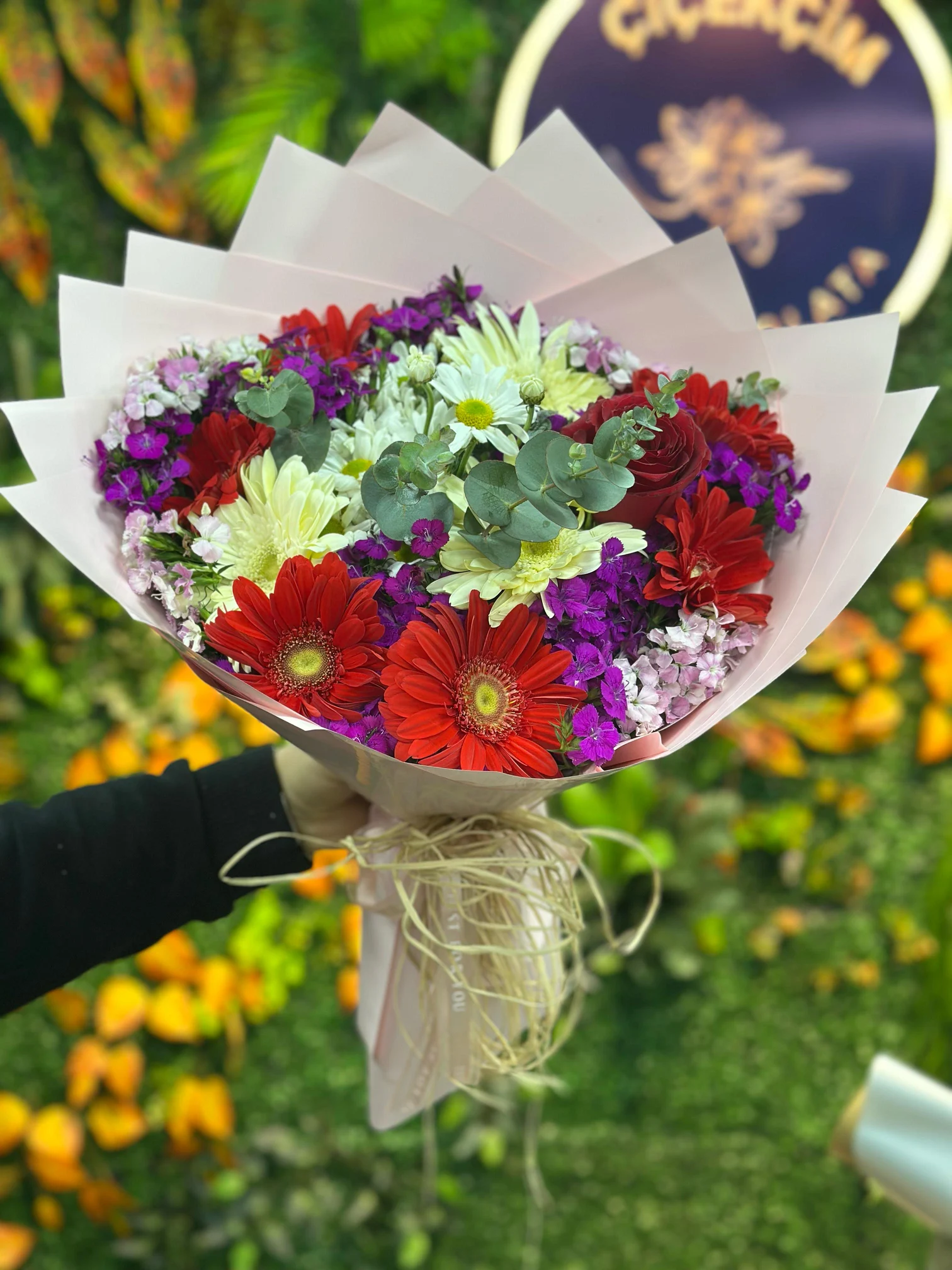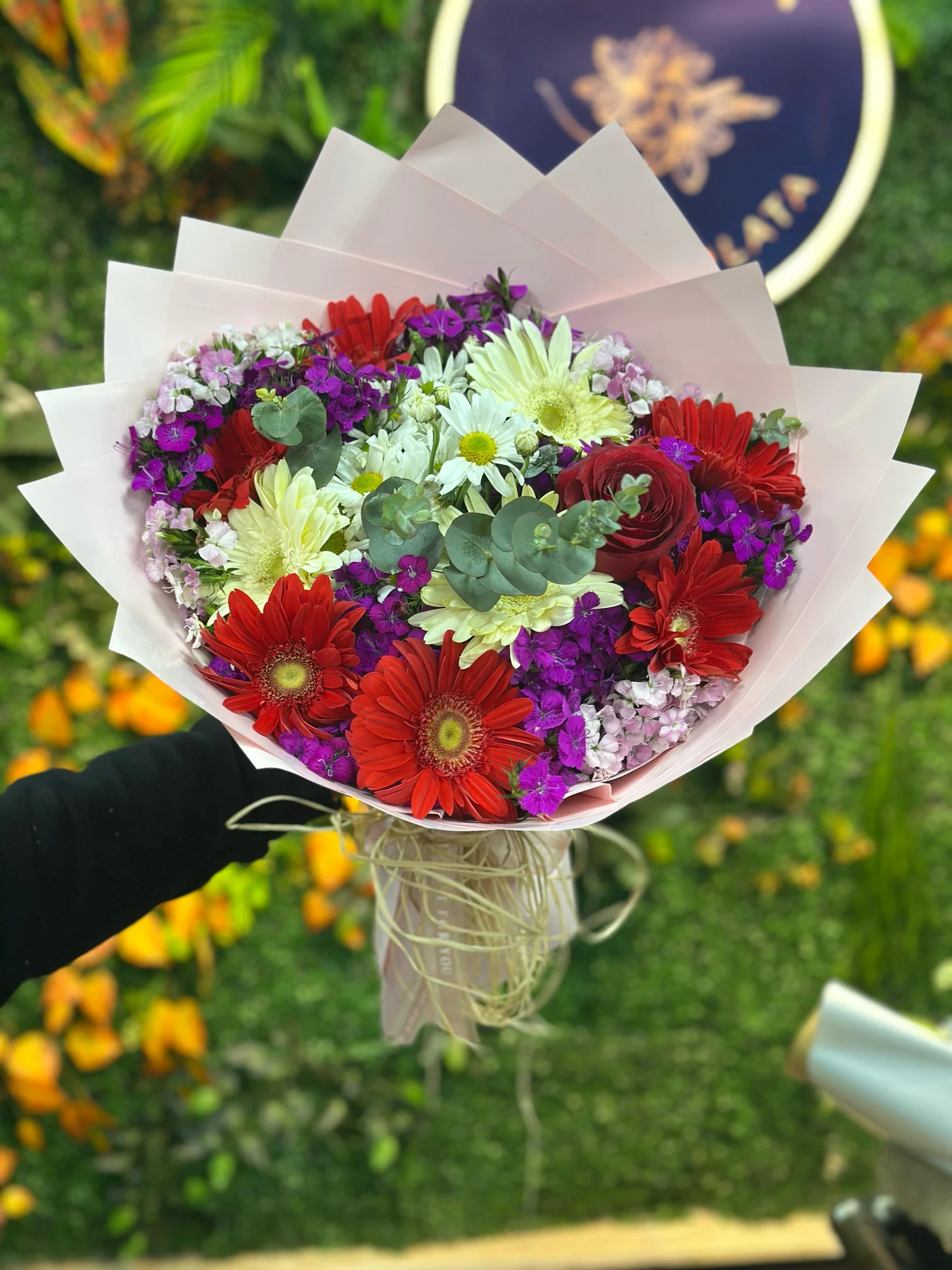 Beyaz Papatya ve Kırmızı Gerbera Çiçek Buketi - 60025