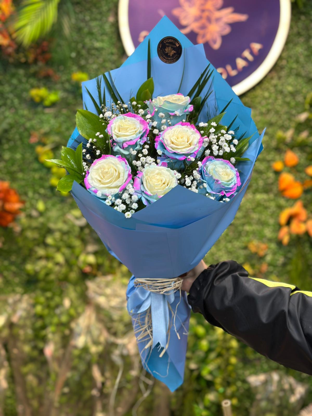 Pembe Gazete Bukette Hüsnüyusuf ve Lila Güller - 60020