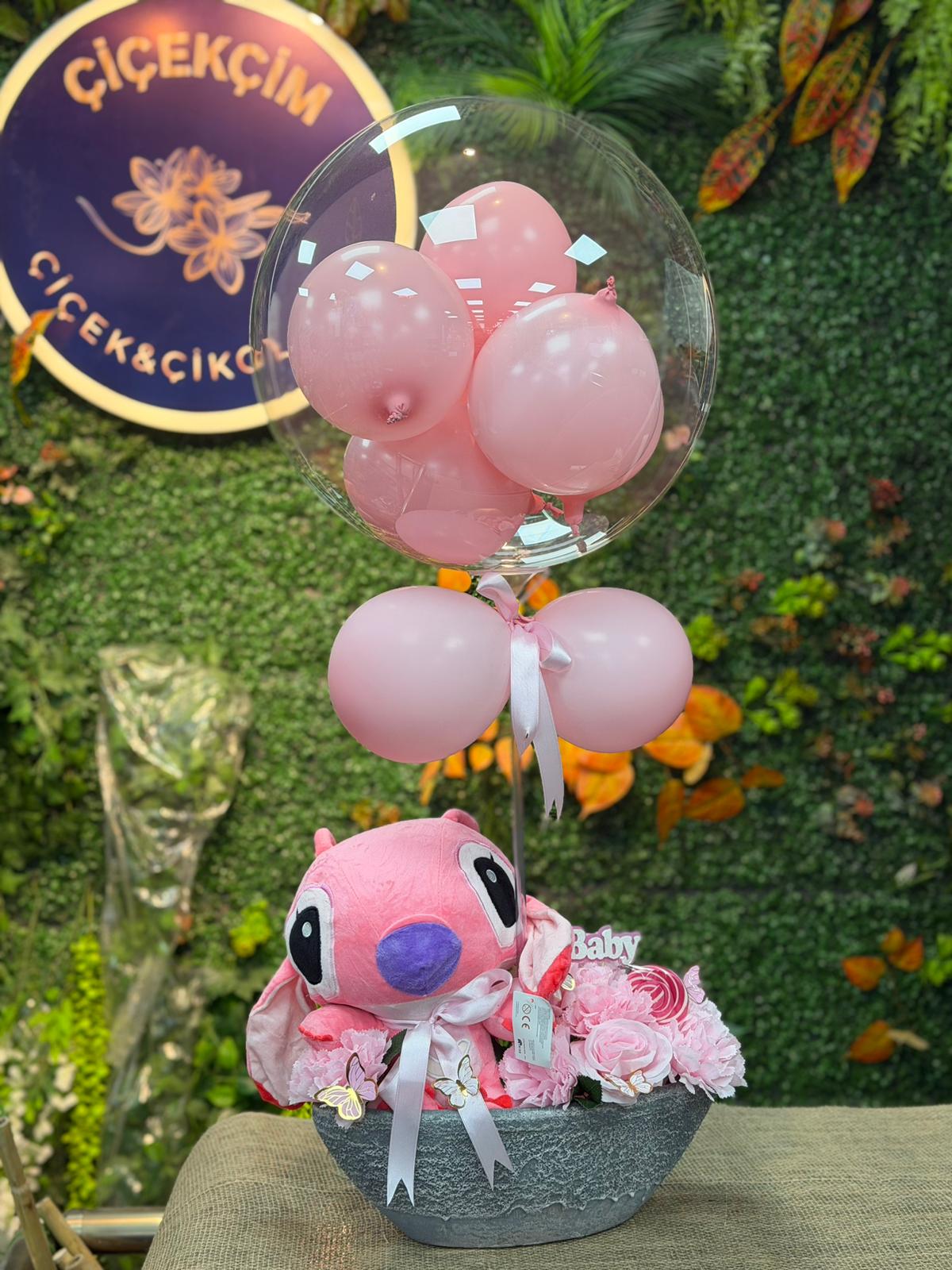 Özel Tasarım Stitch Bobo Balon Pembe