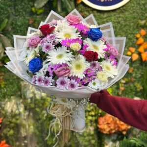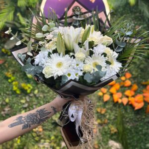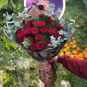 Beyaz Gold Kâğıtta 15’li Gül Buketi