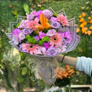Cam Vazoda 12’li Lila Gül Aranjmanı