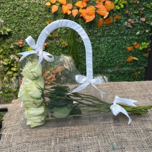 Cam Vazoda 4 Beyaz Gül ve Okaliptus Aranjmanı