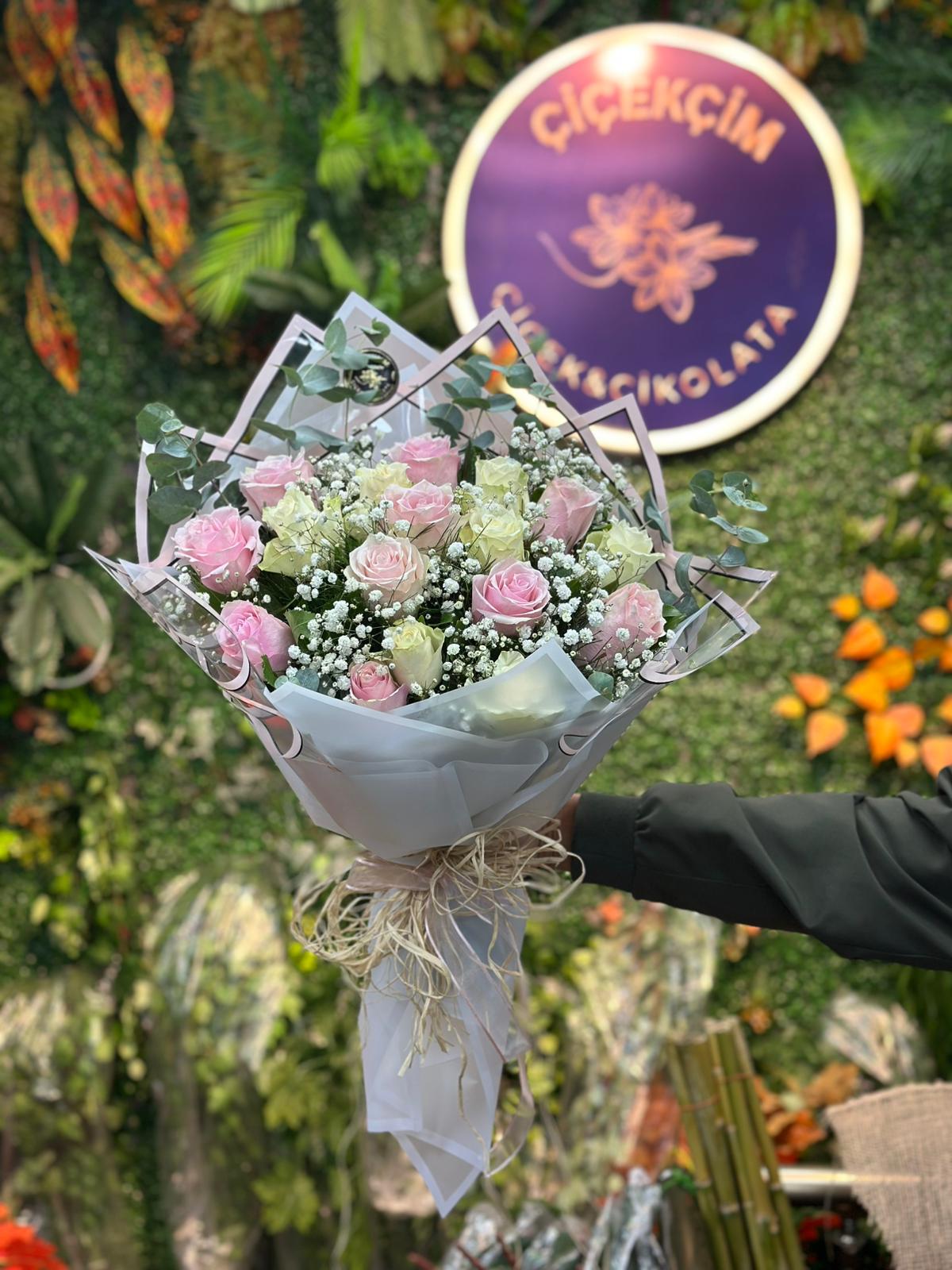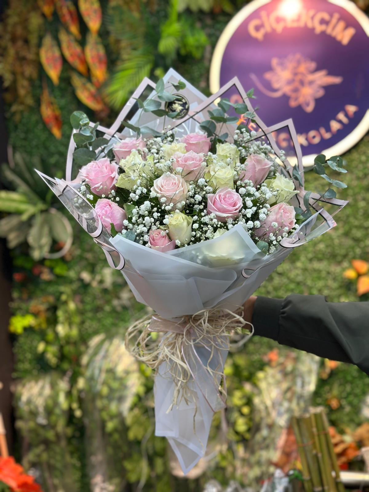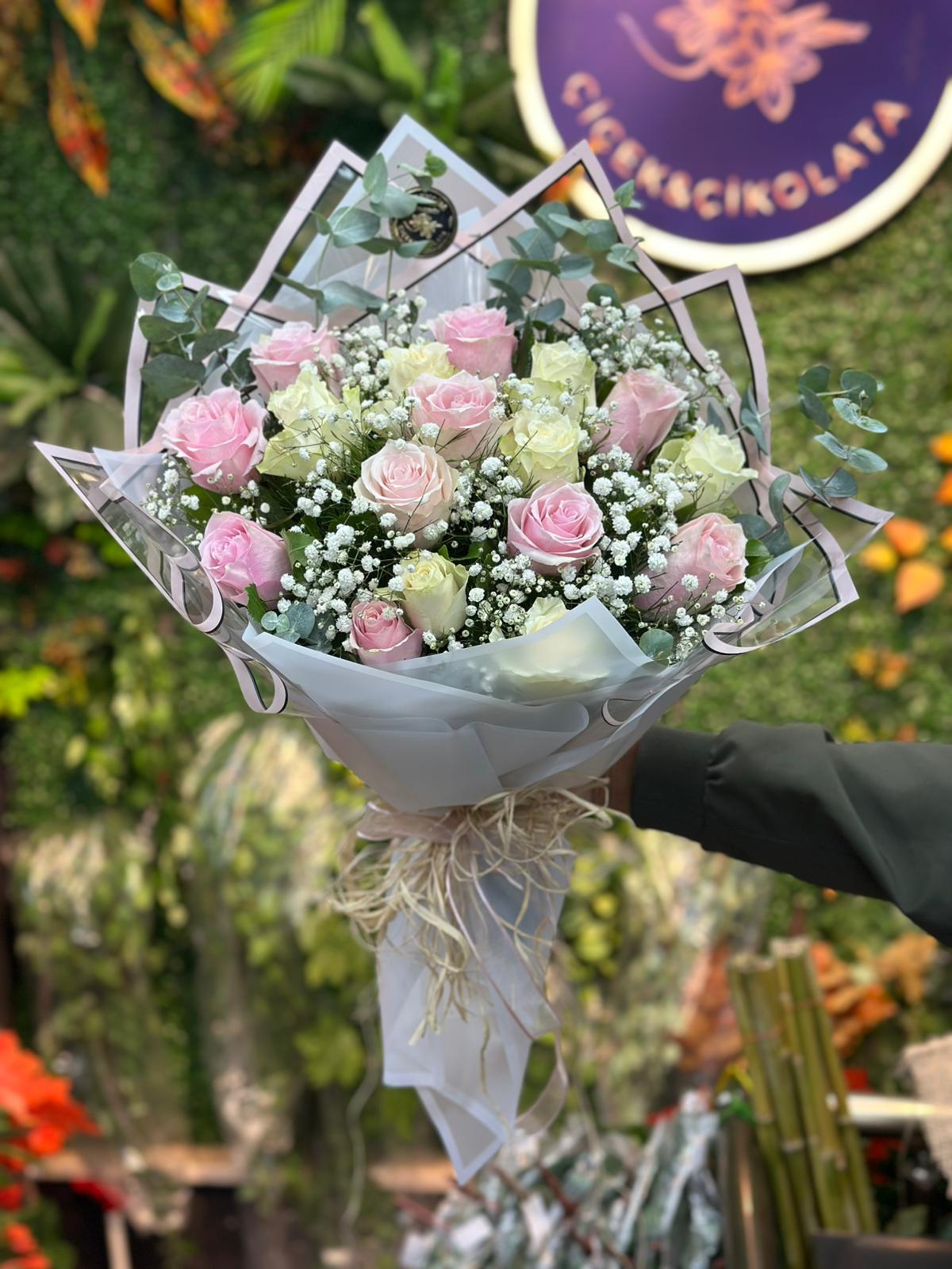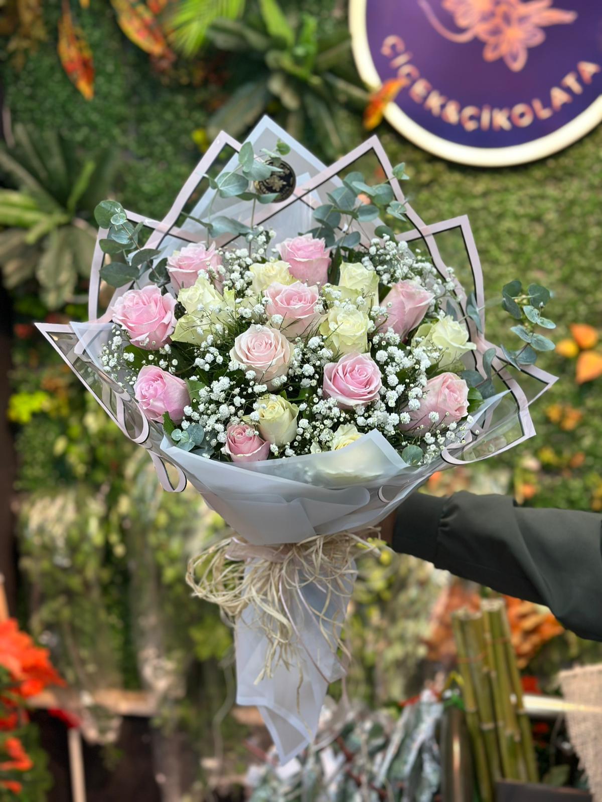 16 Pembe Beyaz Gül Buketi